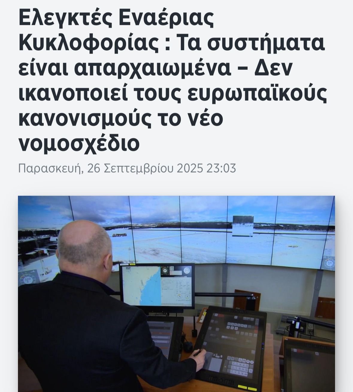 Η ΦΩΝΗ ΛΟΓΙΚΗΣ καταγγέλλει την κραυγαλέα ανεπάρκεια της κυβέρνησης σε ένα κρίσιμο ζήτημα εθνικής ασφάλειας: τα συστήματα ελέγχου εναέριας κυκλοφορίας της χώρας είναι απαρχαιωμένα, η υποστελέχωση άνευ προηγουμένου, και το νέο σχέδιο νόμου προκλητικά υπολείπεται των απαιτήσεων των ευρωπαϊκών κανονισμών.