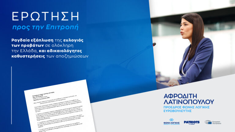 Η Πρόεδρος της ΦΩΝΗΣ ΛΟΓΙΚΗΣ και Ευρωβουλευτής Αφροδίτη Λατινοπούλου κατέθεσε επίκαιρη γραπτή ερώτηση προς την Ευρωπαϊκή Επιτροπή με θέμα τις σοβαρές επιθέσεις που σημειώθηκαν πρόσφατα