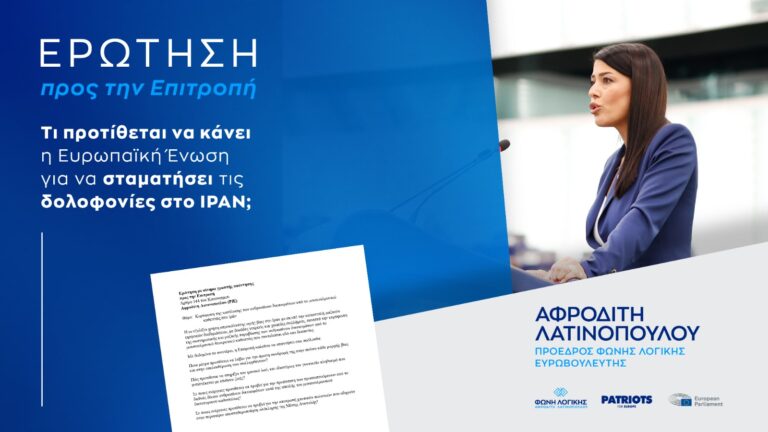 Επίκαιρη Γραπτή Ερώτηση της Ευρωβουλευτή Αφροδίτης Λατινοπούλου προς την Ευρωπαϊκή Επιτροπή για να σταματήσουν οι δολοφονίες στο Ιράν