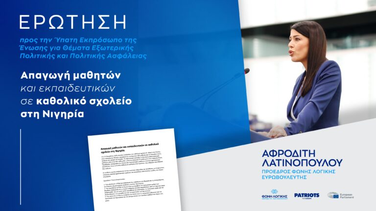 Επίκαιρη Ερώτηση της Ευρωβουλευτή Αφροδίτης Λατινοπούλου για τα εκατοντάδες παιδιά και δασκάλους που απήχθησαν από καθολικό σχολείο στη Νιγηρία